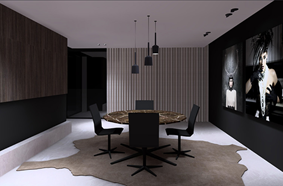Innendørs og utendørs. Designer og produserer dekorative installasjoner for tak, gulv, vegg og bord.
